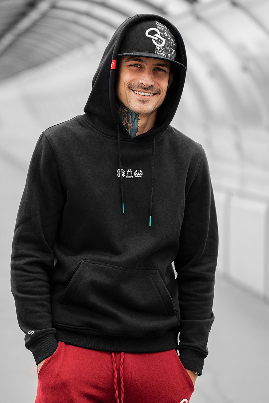 Der Hoodie besteht aus einer Mischung aus Baumwolle und Polyester, durch die hohe Qualität der verwendeten Materialien bietet er einen hohen Tragekomfort. Das Besondere am Hoodie sind die irisierenden | neochromen Metallendstücken an den Kordeln und das flauschige Innenleben.