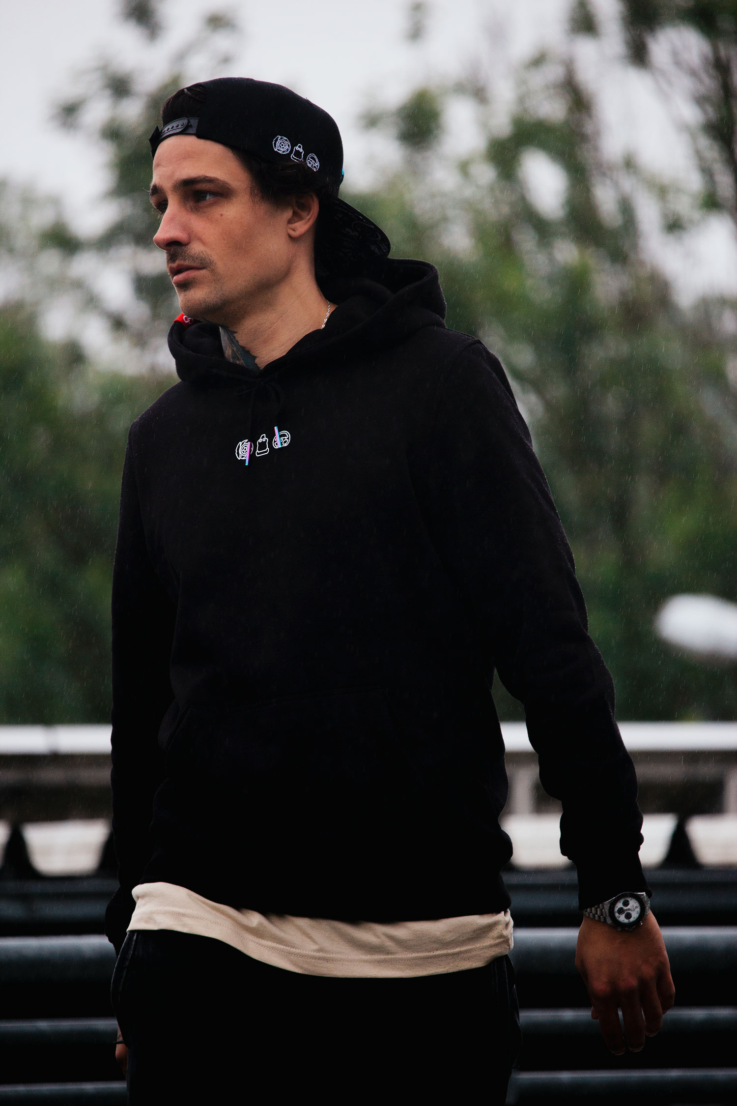 Unser Model ist 1,86m groß, wiegt 77kg und trägt Größe L. Für den perfekten Look empfehlen wir deine normale Größe zu kaufen.