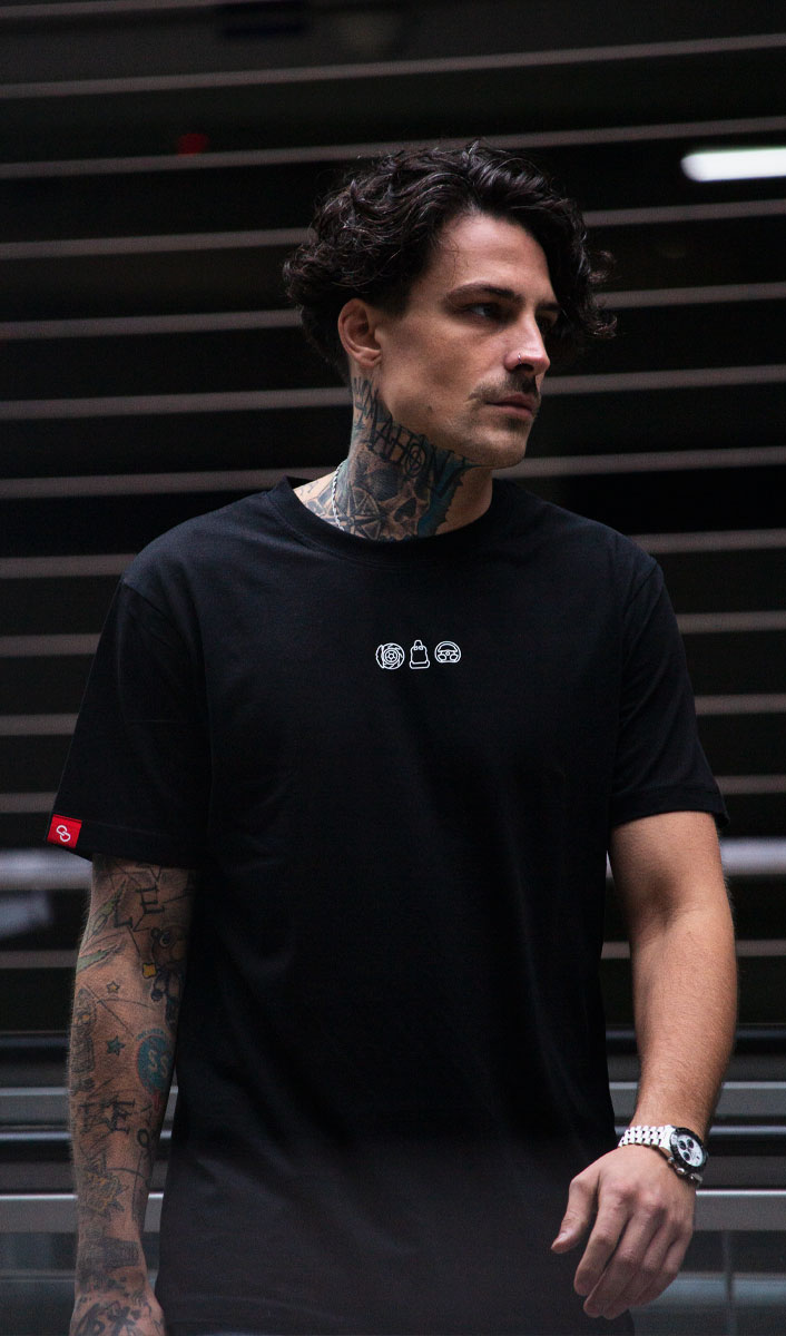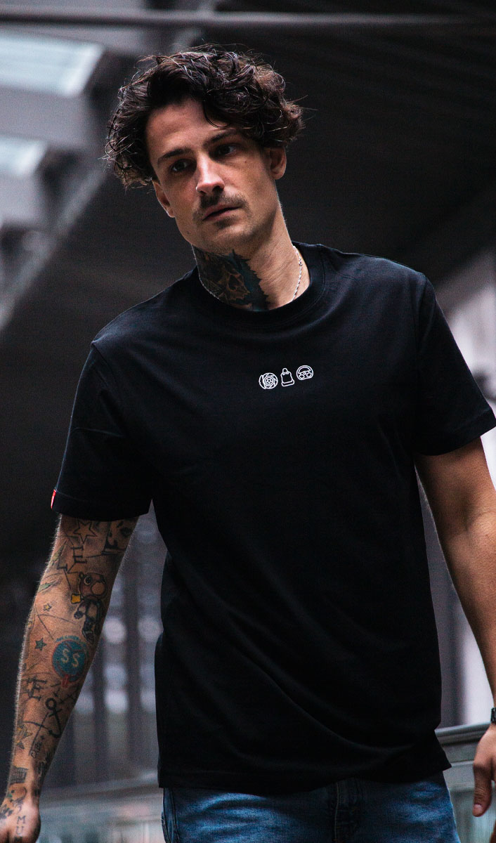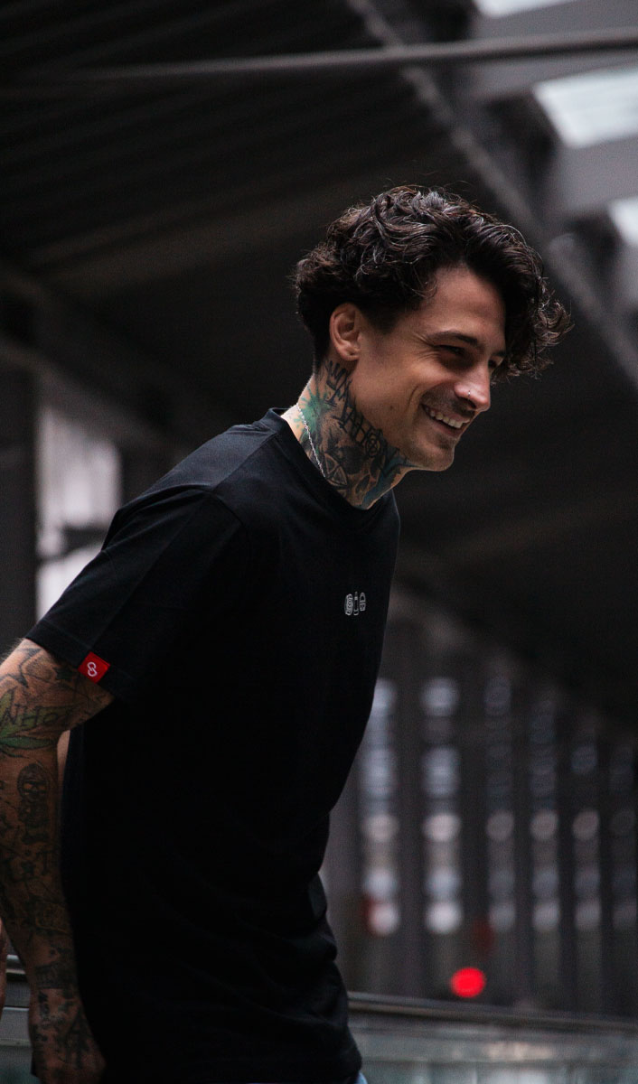 Unser Model ist 1,86m groß, wiegt 77kg und trägt Größe L. Für den perfekten Look empfehlen wir deine normale Größe zu kaufen.