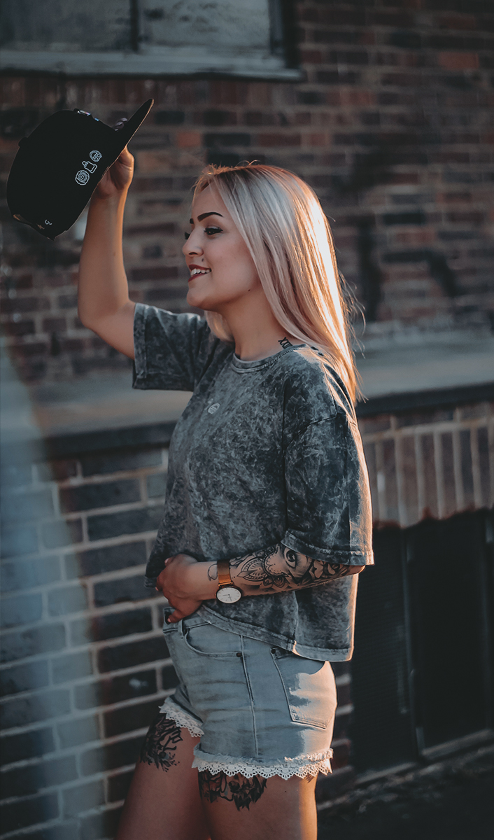 Das Broken Asphalt Cropped T-Shirt bekommt diese Optik durch eine besondere Waschung. Der dadurch entstandene Effekt variiert, somit ist jedes T-Shirt ein Unikat.