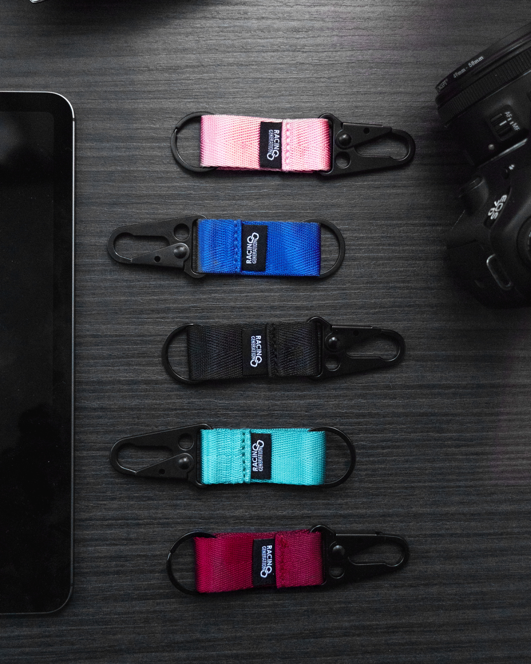 Unser Schlüsselanhänger wird aus langlebigem Nylon hergestellt. Der Schlüsselring in schwarz matt in Kombination mit einem Karabiner bietet genug Platz für verschiedene Schlüssel, sodass du sie immer griffbereit hast.